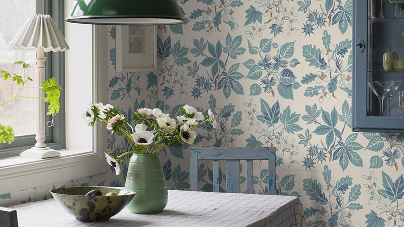 Vliesová tapeta, tyrkysová, listy, 5834, Nordic Folk, Borastapeter