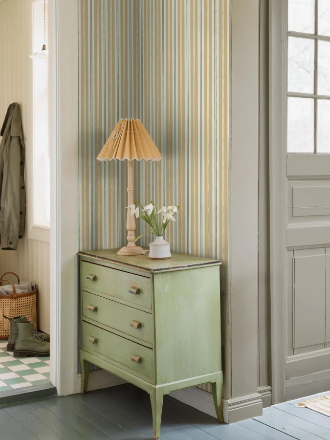 Vliesová tapeta, žluto-zelená, pruhy, 5816, Nordic Folk, Borastapeter